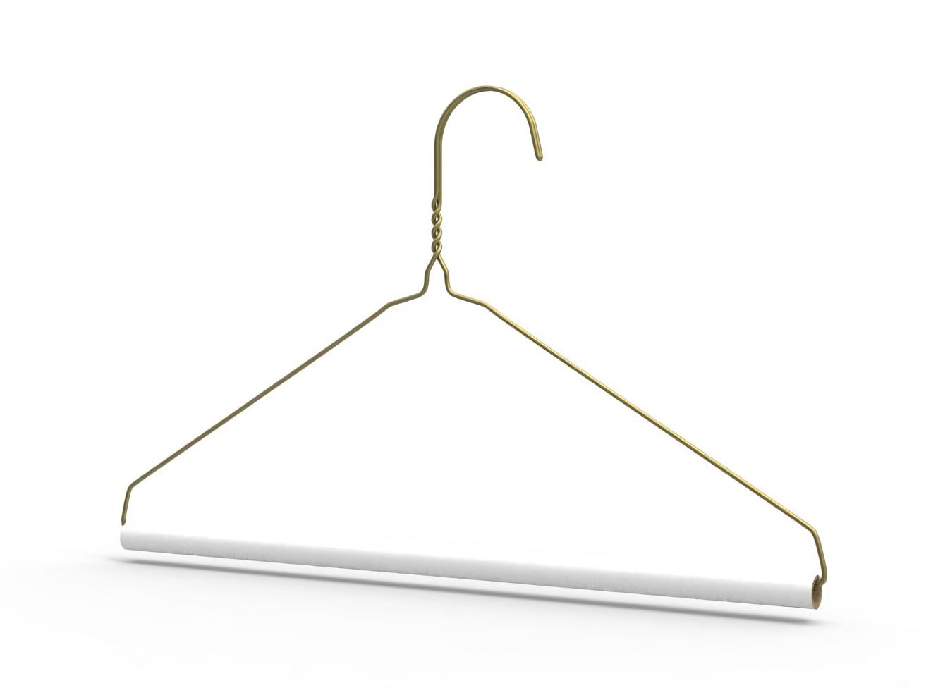 The metal strut hangers include round white cardboard tubes where garments an be comfortably hung. The tube is slightly tacky. Perfect for dress pants, slacks, skirts, jeans and other garments. These wire hangers are standard industrial grade for dry cleaning and laundry businesses. Please note: the metal wire does not go all the way through the cardboard tube. Available in a variety of sizes and gauges. HNG-108 is 16″ with 14.5 gauge gold and 25-500 per box. HNG-118 is 16″ with 14.5 gauge gold and 25-500 per box. HNG-119 is 18″ with 13 gauge gold and 25-500 per box.